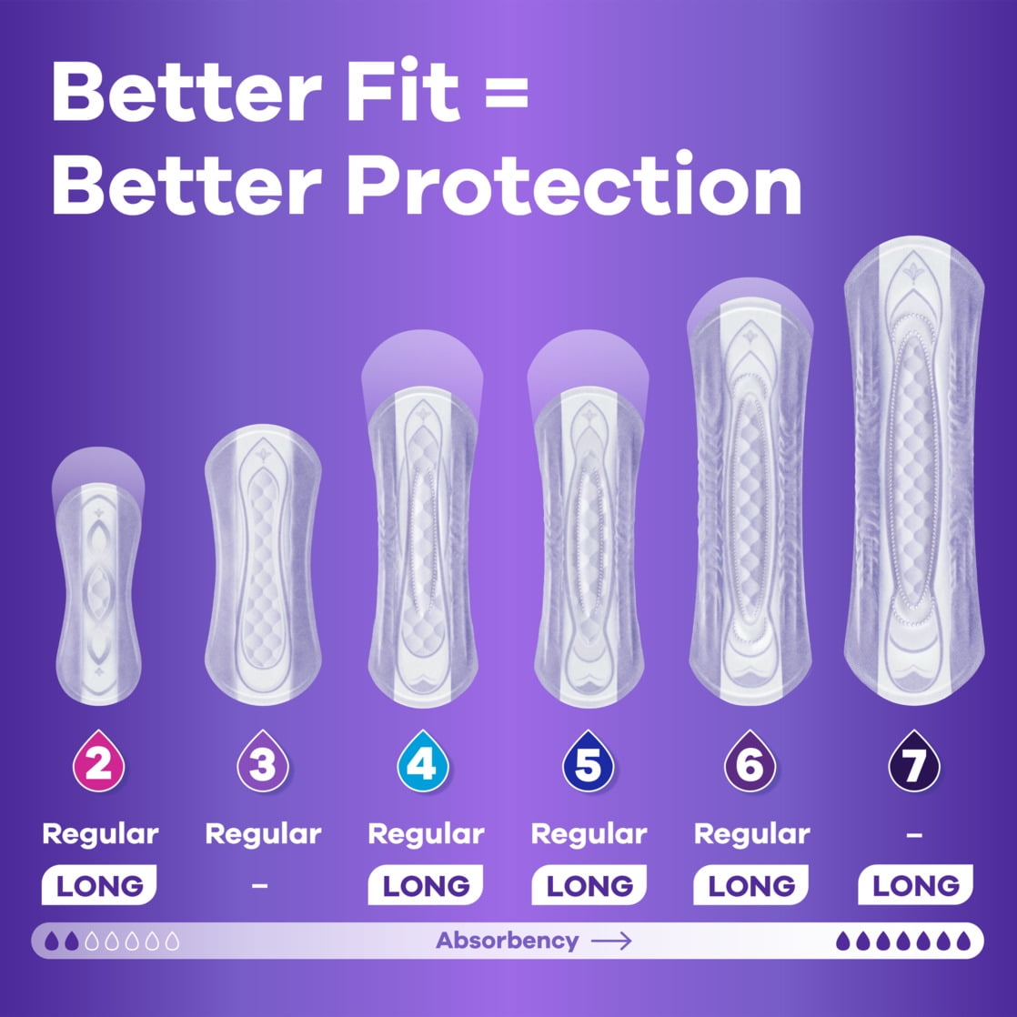 The RapidDry™ core instantly absorbs wetness to help you stay dry and confident, while the LeakGuard™ protection prevents side leaks for extra reassurance. With a thin, flexible design that moves with your body.