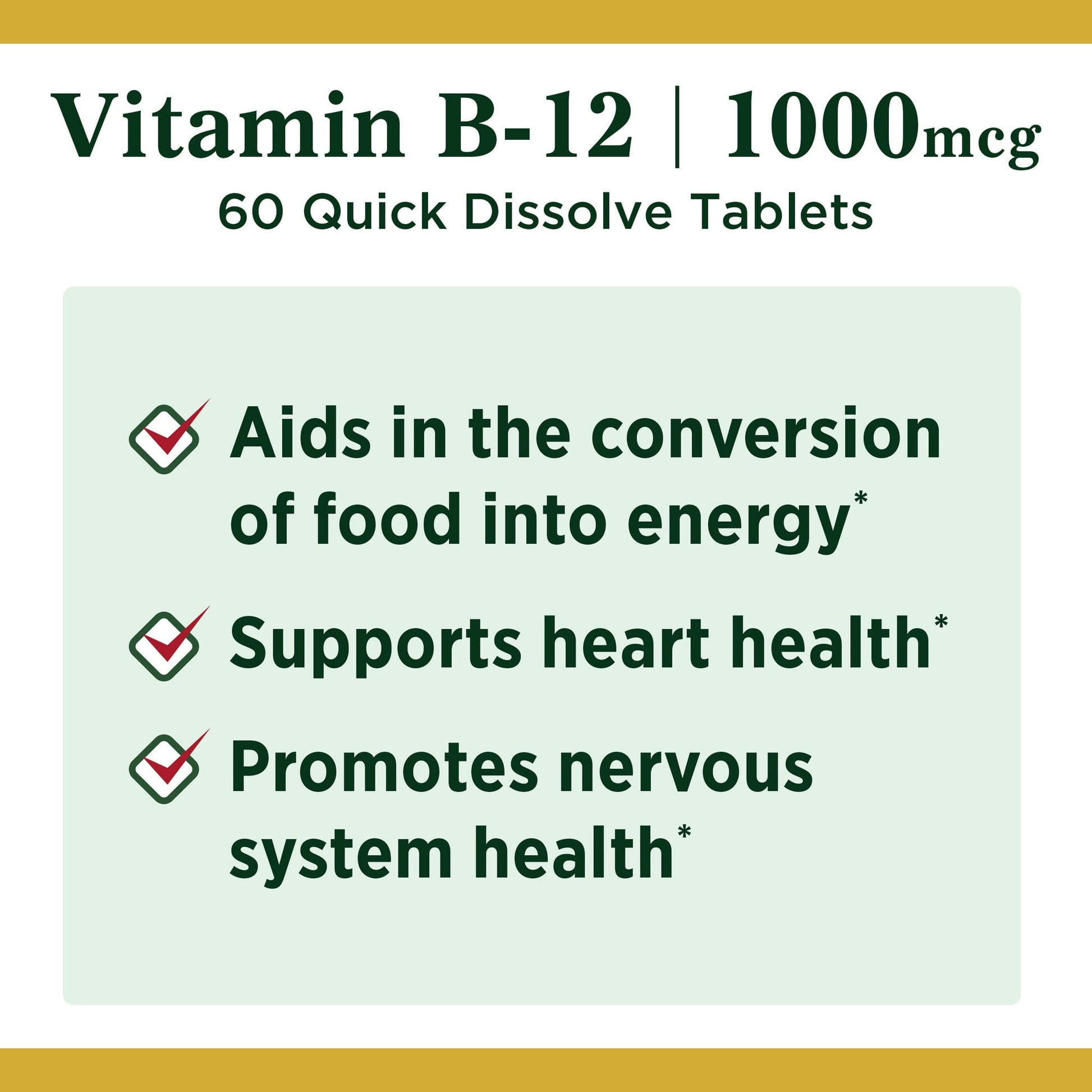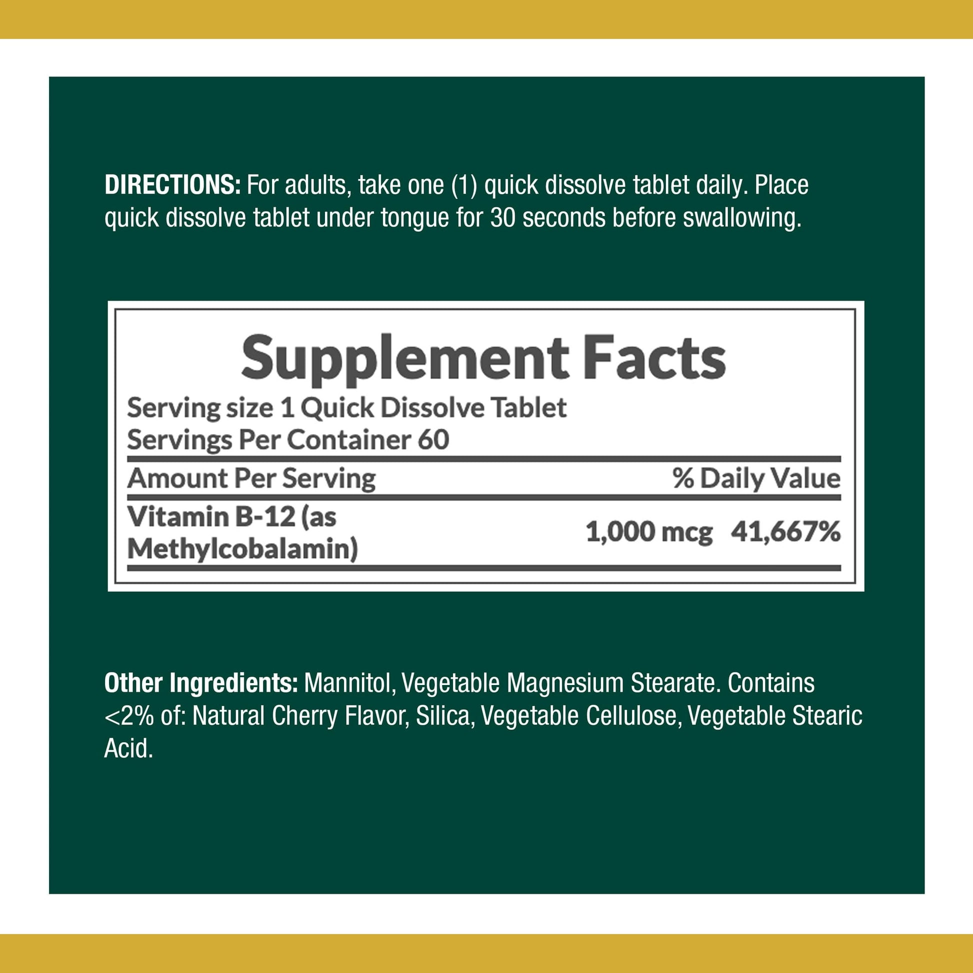 Nature's Bounty Vitamin B12 Methylcobalamin Tablets, 1000 mcg, 60 Ct