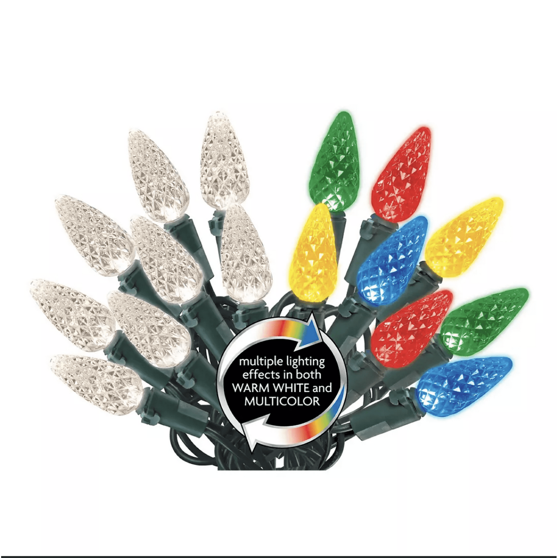 Stay Lit C6 LED Color Changing Christmas Light Set – 100 Count, Multi-Color Changing Indoor/Outdoor String Lights